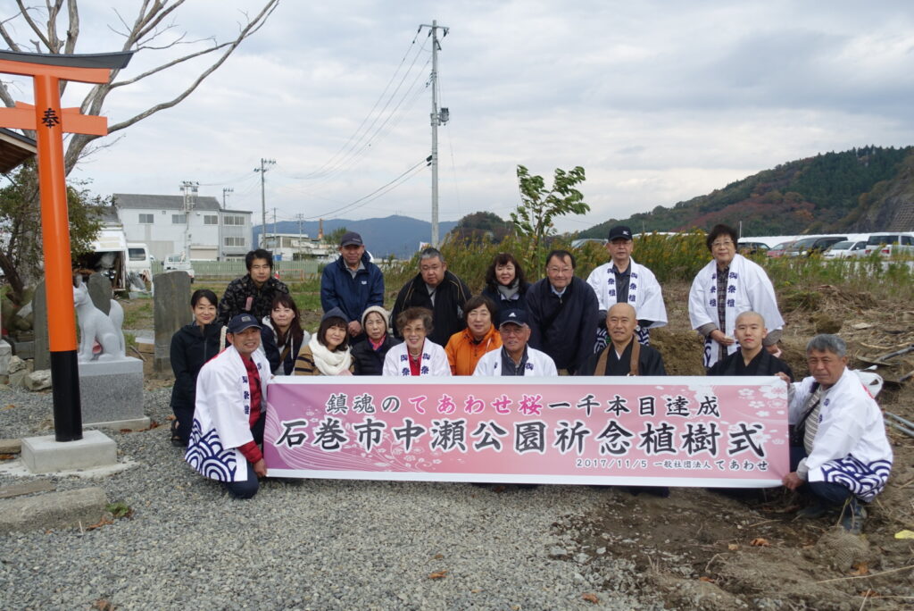一般社団法人てあわせは、東日本大震災の犠牲者への鎮魂供養として、被災者の方々とともに津波被害沿岸に千本の桜を植樹してまいりました。